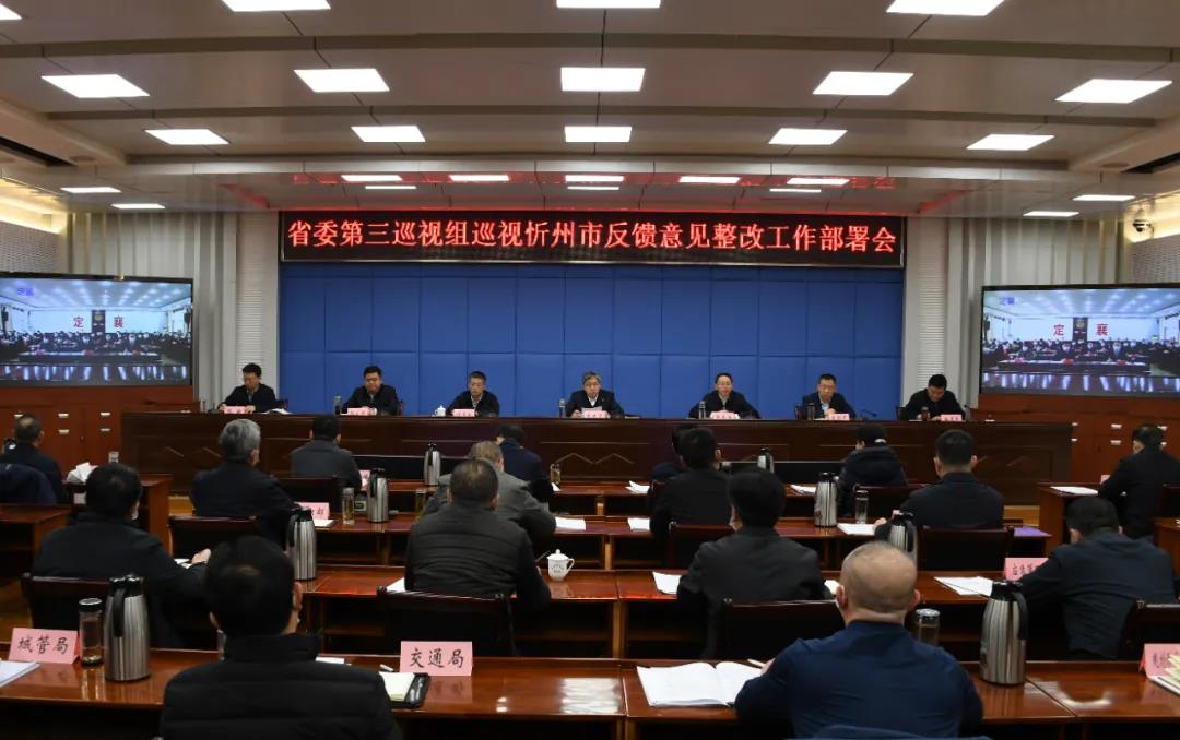 1月28日,省委第三巡视组巡视忻州市反馈意见整改工作部署会召开,安排部署专项巡视和专项检查反馈意见的整改落实工作,切实推动整改任务落实落细落到位,以整改的实际行动推动全年各项工作取得良好开局。市委书记朱晓东主持会议并讲话。市委副书记、政法委书记郭奔胜出席会议。市委常委、市纪委书记、市监委主任刘卓良就监督推动巡视反馈问题整改提出意见。市委常委、常务副市长赵新年安排部署涉粮巡视问题整改任务。市委常委、秘书长、统战部长张文伟安排部署省委巡视整改专项检查反馈问题整改任务。市领导温建军、张敏、武宪堂、范建民、贾玲香、耿鹏鹏、郭宝厚、袁小波出席。