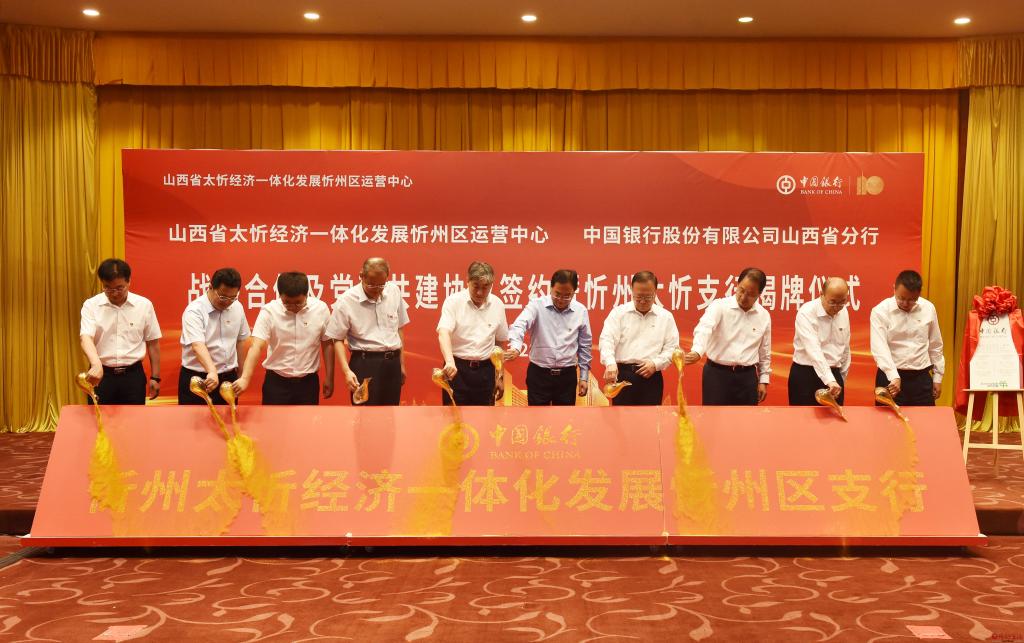 6月30日,山西省太忻经济一体化发展忻州区运营中心与中国银行股份有限公司山西省分行战略合作及党建共建协议签约暨忻州太忻支行揭牌仪式举行。市委书记朱晓东,中国银行股份有限公司山西省分行党委书记、行长臧新军出席并讲话。中国银行股份有限公司山西省分行副行长马军保、王智勇,市领导张宇光、李硕、王建峰及市直相关部门负责人参加。