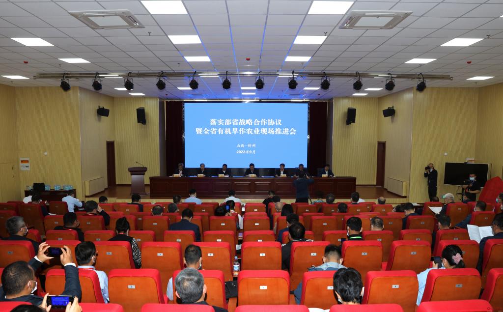 9月21日,落实部省战略合作协议暨全省有机旱作农业现场推进会在忻州市召开。副省长贺天才,国家农业农村部种植业管理司一级巡视员陈友权出席并讲话,省政府副秘书长丁永平出席,省农业农村厅厅长刘志杰主持并讲话,忻州市委书记朱晓东出席并致辞,山西农业大学校长张强出席并作交流发言,国家旱地农业科技创新联盟秘书长王庆锁宣布全国旱作农业科技创新联盟有机旱作专业委员会成立并揭牌,中国工程院院士康绍忠、尹飞虎分别作线上专题报告,忻州市政府副市长崔峥岭出席并作交流发言。全国旱作节水农业研讨观摩会代表,全国旱作农业科技创新联盟有机旱作专业委员会代表,省有机旱作农业发展领导小组部分成员单位有关负责人,兄弟市分管副市长、农业农村局局长参加会议。