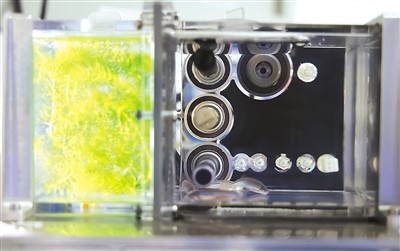 在问天舱生命生态实验柜小型受控生命生态实验模块中,鱼类、植物和微生物协同参与——藻类光合作用产生的氧气供斑马鱼呼吸,鱼呼出的二氧化碳供藻类进行光合作用,进食产生的粪便则提供了藻类生长的养料。在饮食方面,科学家专门设计了鱼食,用注射器推进“鱼缸”。