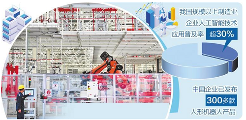 人工智能已具备与产业大规模融合的能力,正从单纯的技术工具升维为驱动经济发展的核心引擎。数据显示,我国规模以上制造业企业人工智能技术应用普及率已超30%,中国企业已发布300多款人形机器人产品,去年中国开源模型下载量居全球首位,人工智能正从科技攻关不断走向场景落地。