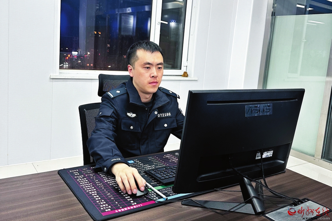 马利君的从警生涯虽然不长,但他经历的艰险、考验和面对的挑战却是很多人一生都不曾遇到的。他用不懈努力、滚石爬坡的昂扬斗志抒写着自己的警察故事。图为马利君在工作中。 (赫在荣)