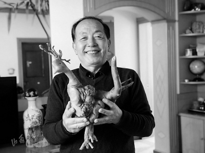 11月3日上午,山西晚报记者在太原市小店区中铁十七局医院宿舍见到了牛鸣远,根雕艺术让这位老人的退休生活丰富多彩。