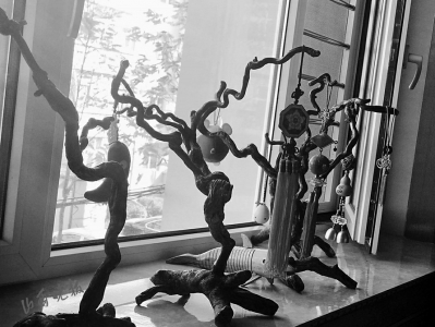 见到牛鸣远时,他正忙着在家中的阳台上悬挂两个大树枝。“这是枣树枝,还有点湿,得挂起来晾干后才能再进行加工。”牛鸣远说,朋友收拾平遥老家的房子时,砍了院子里的大枣树,知道他喜欢根雕,就专门运回来一些送给他。
