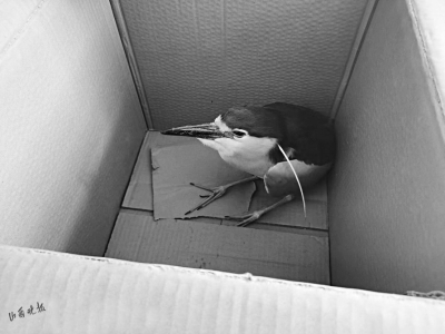 一位村民说:“我是在路边看到它的,可走到它身边,它却没飞走,是不是受伤了?”另一位村民指着纸箱里的“漂亮的鸟”说:“看它的外形、颜色,都跟平常见的鸟不一样……”两位村民担心自己处置不当,于是便送往派出所,向民警求助。