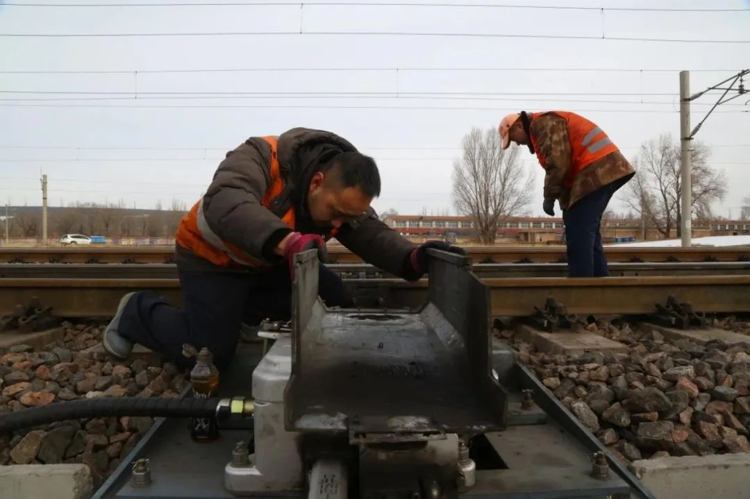 “放上木楔子,把道岔清理干净!”为了保障春运期间道岔平稳运行、列车安全畅通,铁路信号工们加大道岔检修力度,左手一把腻子铲、右手一瓶机油,为道岔进行清洁保养。