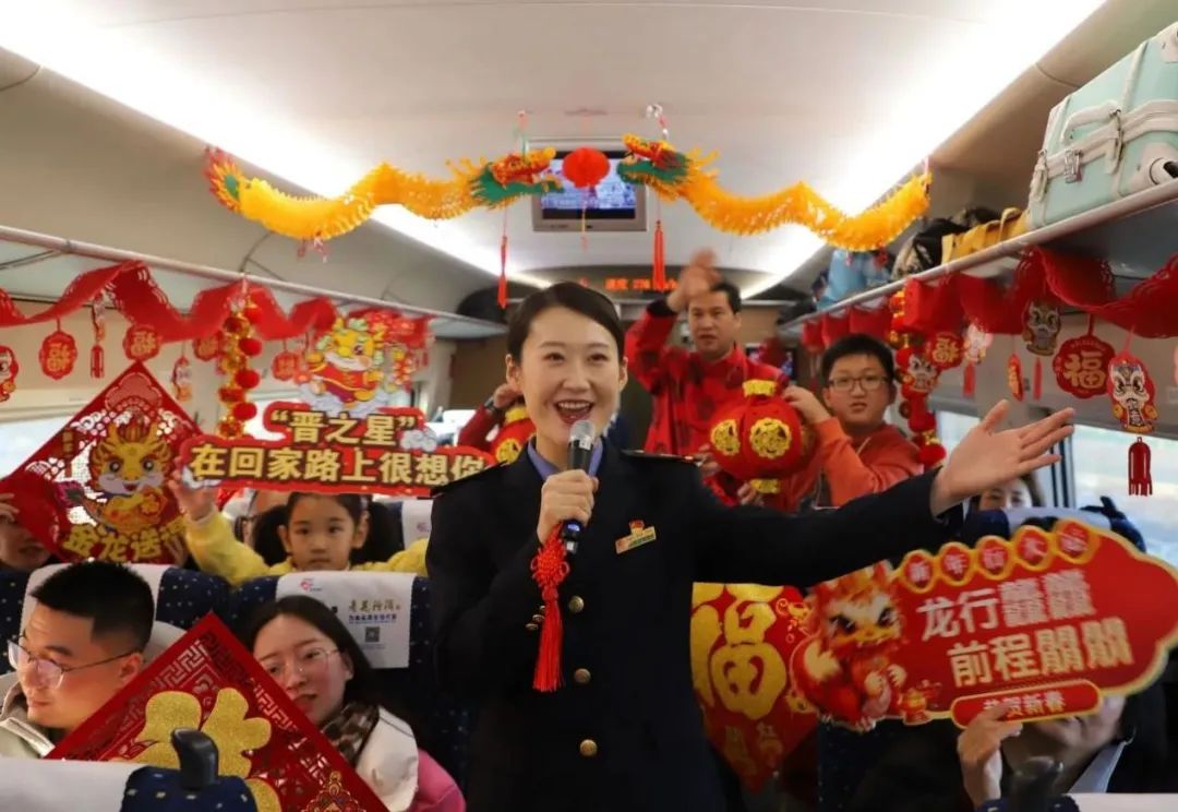 春运首日,太原客运段各次列车围绕“龙行龘龘 旅程暖暖”主题,开展了精彩纷呈、喜庆热闹的列车文化活动。回家路上,我们不孤单。