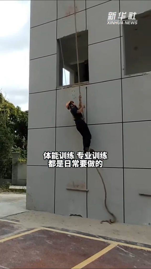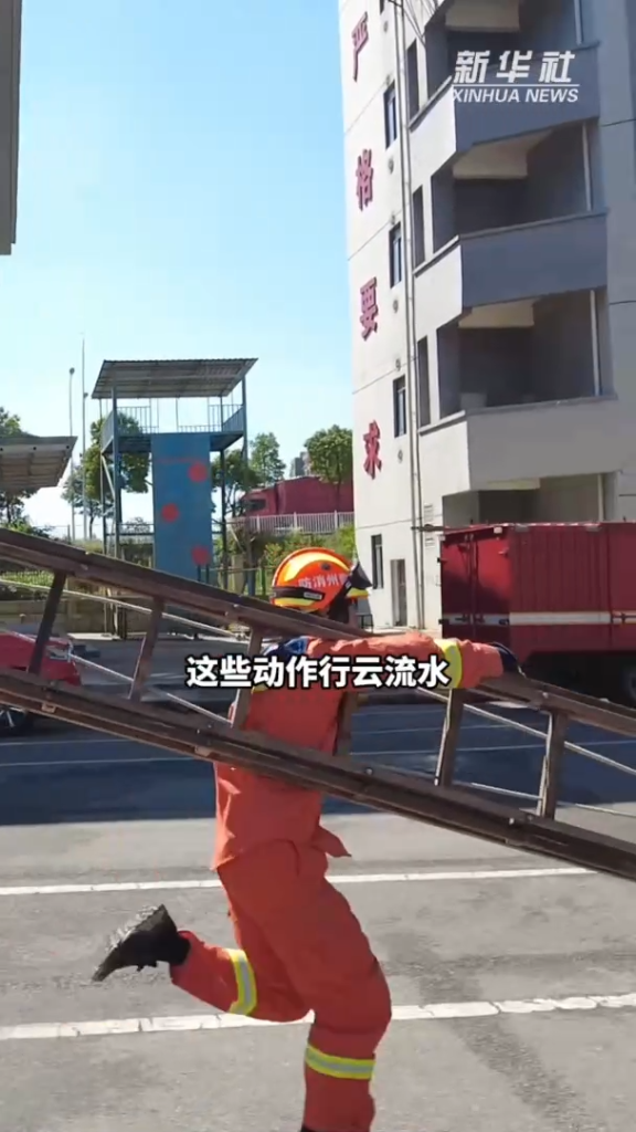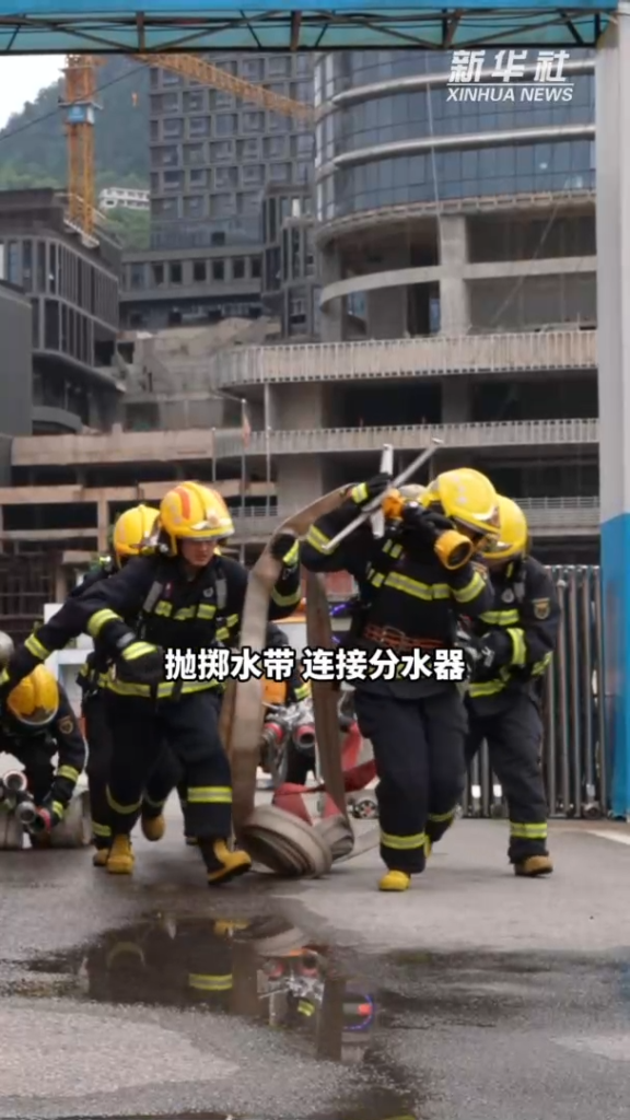 整理内务、体能训练、专业训练都是日常要做的,穿着40多斤重的装备,身手十分的娴熟。抛掷水带、连接分水器、架设消防梯、水枪连接水带这些动作行云流水,丝毫不拖沓。