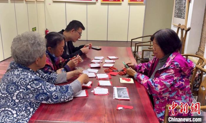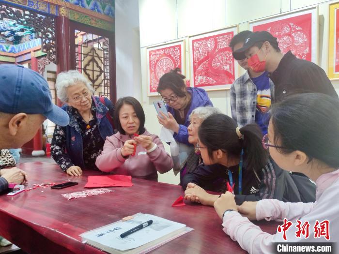 传承人梁盛萍现场传授剪纸技艺。梁盛萍供图