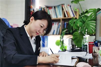 图为法官正在查看案卷材料。