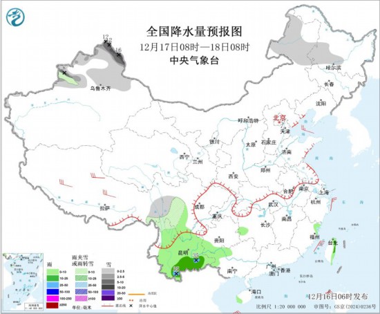 全国降水量预报图(12月17日08时-18日08时)