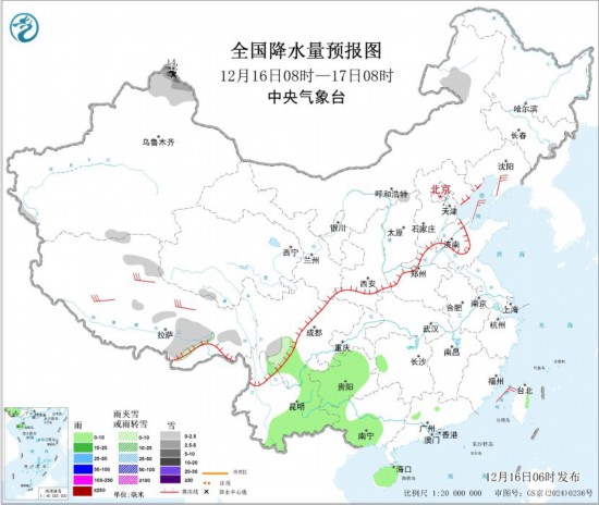 全国降水量预报图(12月16日08时-17日08时)