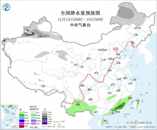 全国降水量预报图(12月18日08时-19日08时)