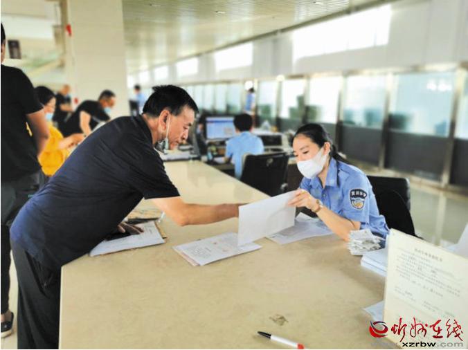 近年来,市车辆管理所积极创新管理方式,提高工作效率和服务质量,努力通过车管所营业厅这个小“窗口”,为市民提供一流的车辆管理服务。图为工作人员在为客户刘先生办理业务。王金龙 摄