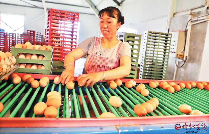 原平农商行积极开展“三大四扫五进”活动,让普惠金融的触角向乡村不断延伸,精准对接县域种养大户,支持种养业发展。今年,该行为原平市兴崞养殖专业合作社提供400万元信贷资金,解决了企业流动资金不足的问题。图为专业合作社的工人在车间分捡鸡蛋。赵 鸿 摄