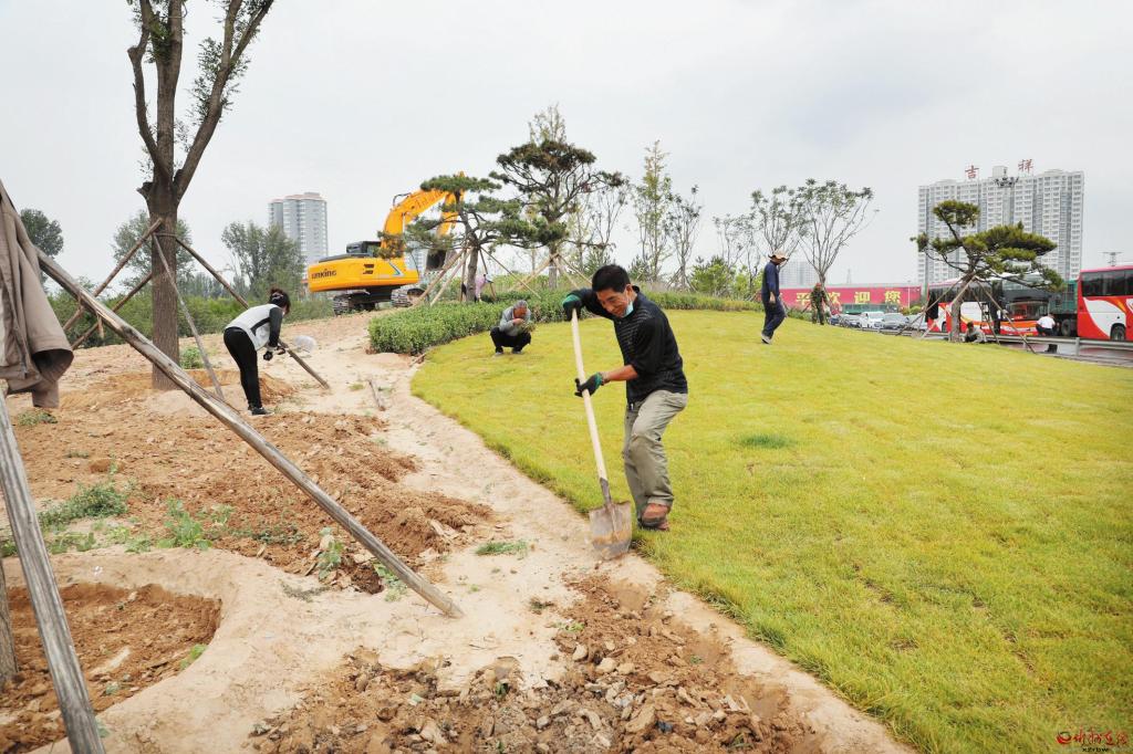9月14日,原平市高速路口两侧的绿化工作正在如火如荼地进行着。挖掘机挥舞着铁臂挖掘土壤,数十名工人忙碌着搬运花草,栽植树木。据了解,该市今年绿化工程总投资1.3亿元,对范亭广场、原平经济技术开发区、高速路口两侧及新华广场、崞红线进行绿化提升改造,乔、灌、花、草合理组配,达到增层、增色、增花的效果。(褚 震 摄)