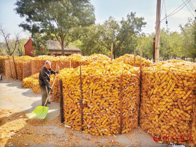 定襄县河边镇村民晾晒玉米
