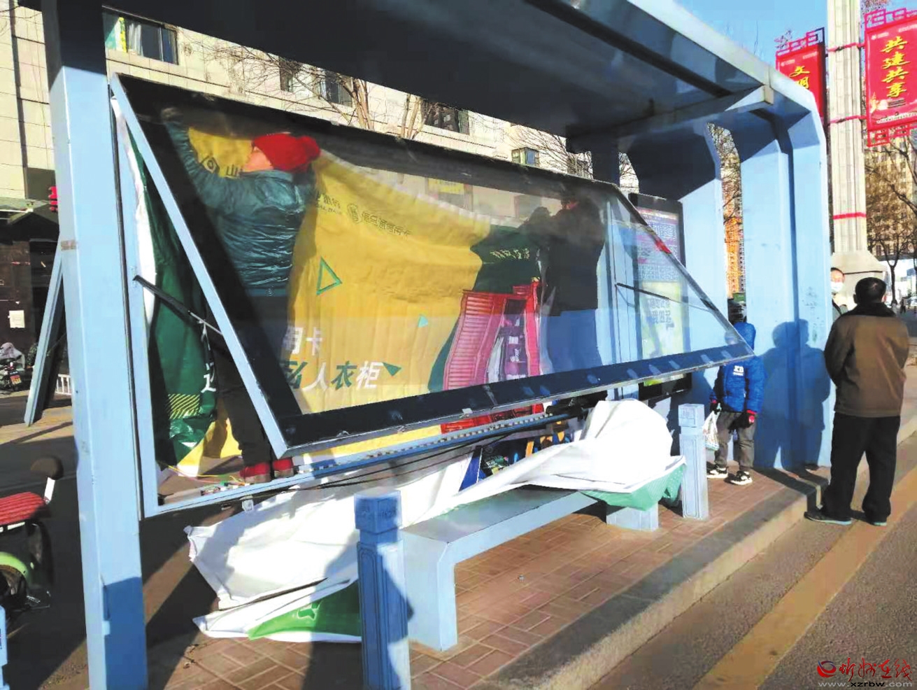 新年刚过,有关部门对忻州城区公交站台公益广告牌进行及时更换,让市民在乘车之余感受到新年新变化新气象。 (本报记者 李 涛 摄)