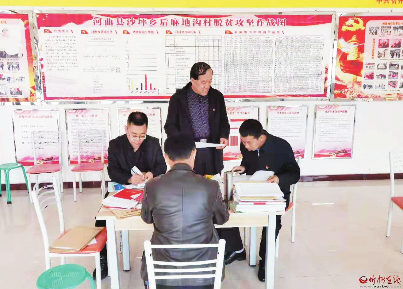 为扎实推进党史学习教育,深化“我为群众办实事”实践活动,教育引导广大党员干部发扬党的优良传统,积极为群众排忧解难,4月9日,市委政法委机关党员干部来到河曲县沙坪乡后麻地沟村开展“我为群众办实事”实践活动。图为大伙帮助整理建档立卡贫困户资料。 (任恒利 摄)