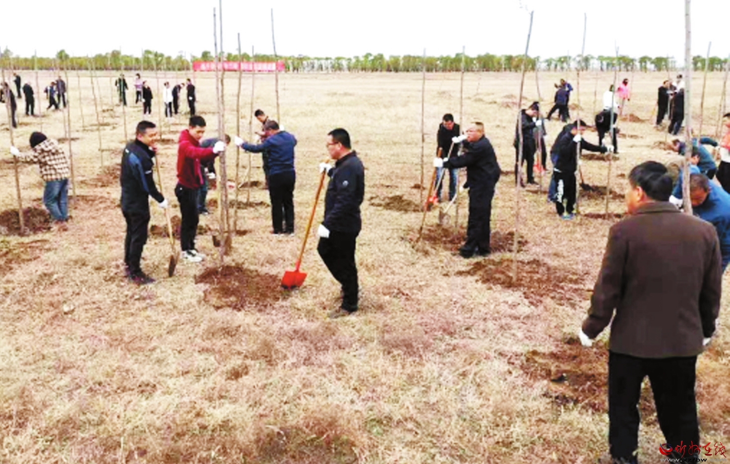 4月13日上午,市生态环境局定襄分局在滹沱河定襄县受禄乡段开展义务植树活动。植树现场,大家分工协作,挥锹挖坑、扶苗浇水,共植树百余株。该分局还在现场悬挂“积极开展高速沿线环境综合整治 持续改善全县生态环境质量”的宣传标语,营造生态环境保护工作良好氛围。(本报记者 张剑雄 摄)