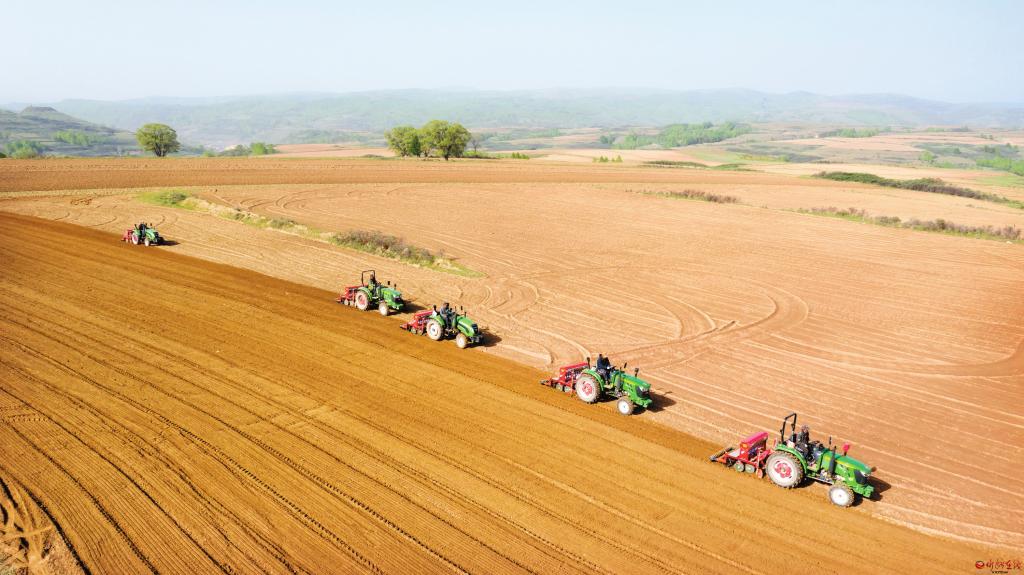 5月23日,宁武县马营村村民正在使用机械种植莜麦。宁武县是莜麦的传统种植区,2017年,“宁武莜麦”荣获农业部“农产品地理标志”登记保护,2020年10月16日,中国粮食行业协会命名宁武县为“中国高原莜麦之乡”。宁武县现已建成莜麦标准化种植基地5万亩,产量达到1260万公斤,占到山西省莜麦总产量的10%以上,培育发展起以“芦芽农夫”“乡之味”等自主品牌为龙头的莜麦深加工企业。 (曹建国 摄)