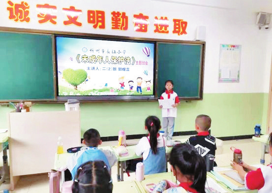 为加强对未成年人的思想道德教育,保护自身合法权益,增强安全意识,6月11日,忻州市长征小学组织各班开展了《未成年人保护法》学习宣传教育活动。 (冯伟伦 摄)