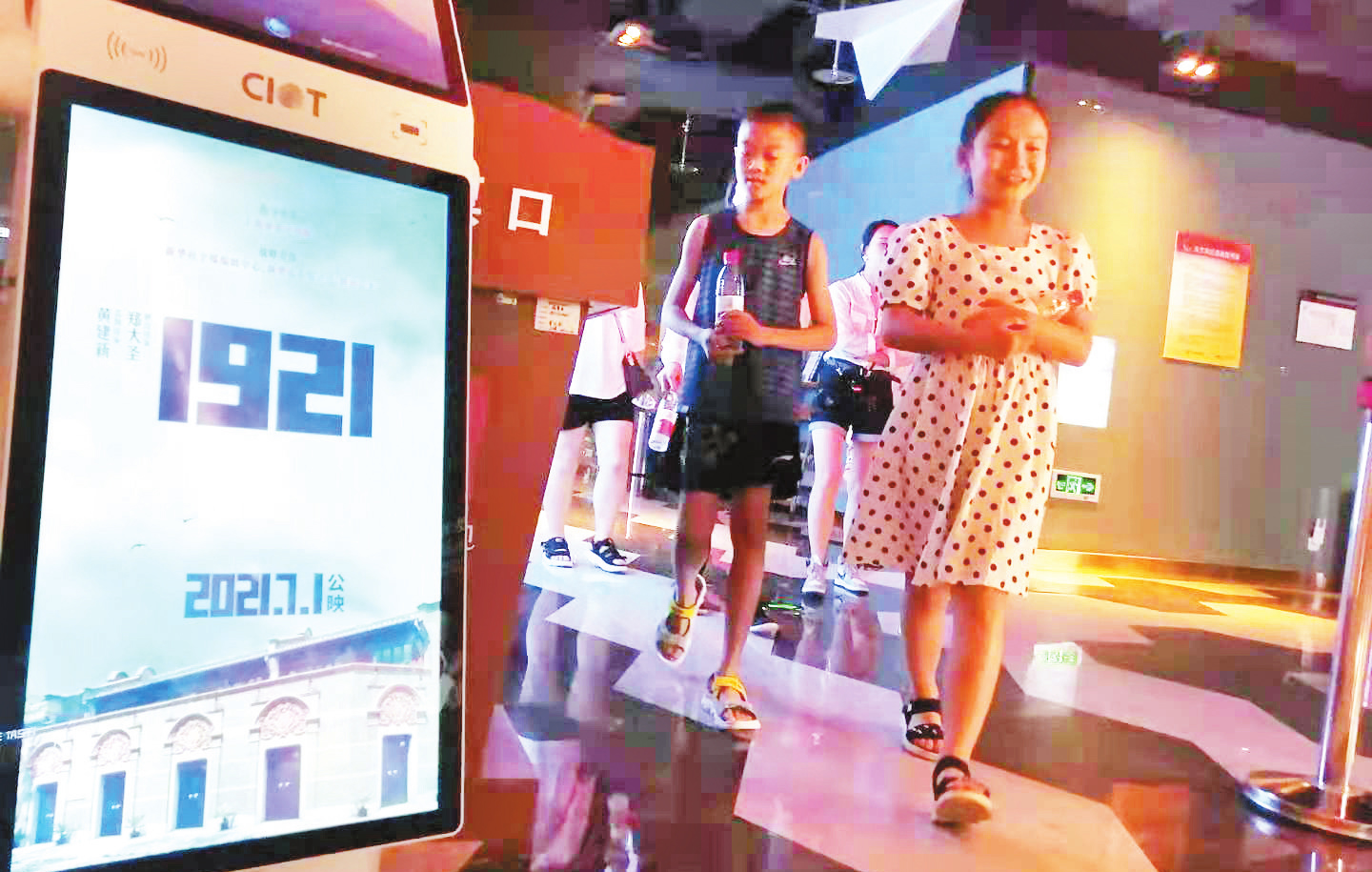 近日,央视一套晚间播出的《大决战》成为许多市民晚饭后必追的剧,特别是一些中老年人,还会在第二天的聊天中谈论剧中情节。与此同时,在各大影院上映的电影《1921》和《革命者》也受到观众欢迎。据忻州市城区一家电影院的工作人员介绍:“近年来,爱国主义电影广受欢迎,我们影院也尽可能地满足观众需要,在庆祝中国共产党成立100周年之际,开展了‘永远跟党走’主题电影放映活动。电影《1921》和《革命者》上映后场场爆满,不同年龄段的观众都有,有的家庭甚至还是祖孙三代一起来观看,这在其他类型的电影上映中是很少见的。” (本报记者 李 涛 摄)
