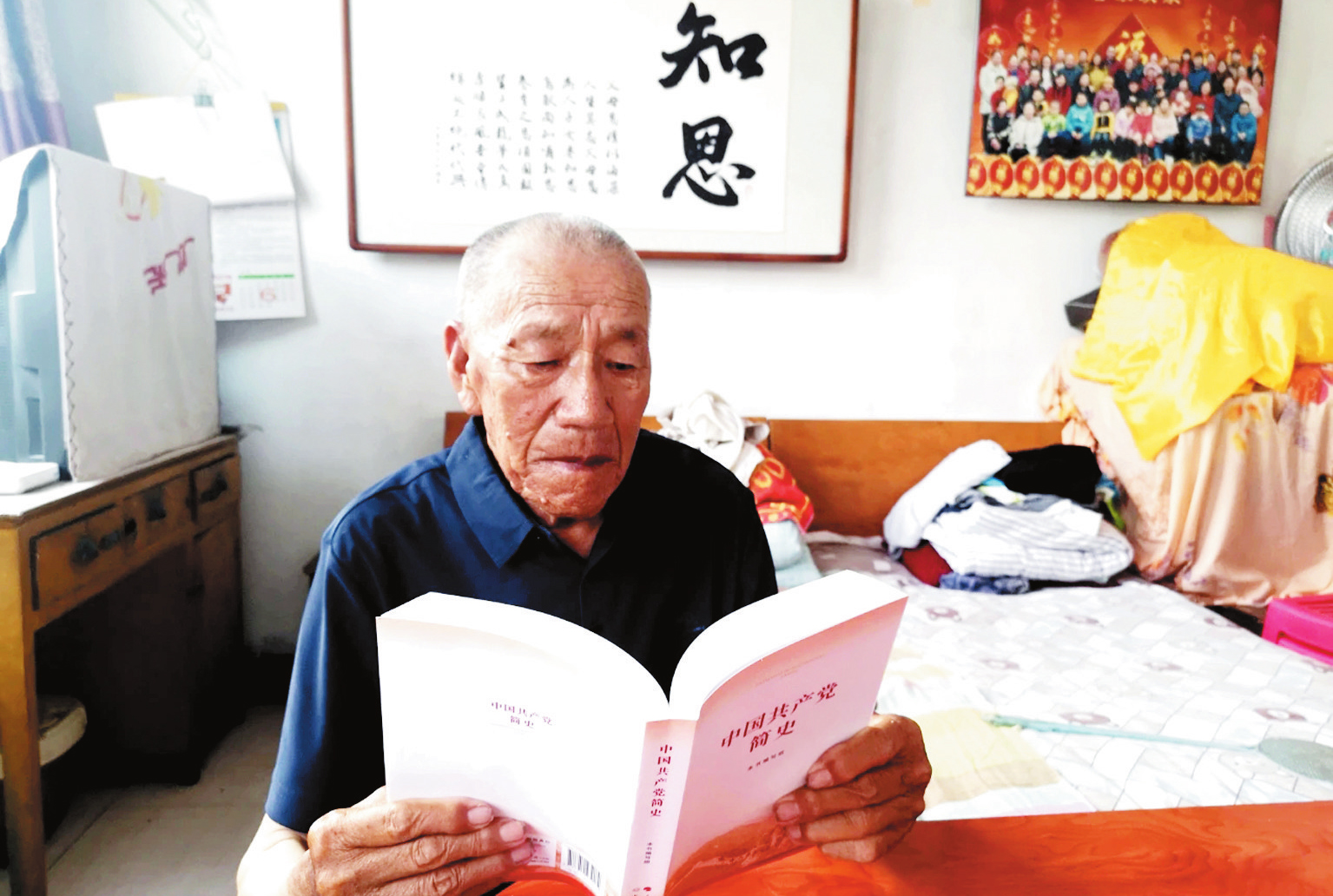 静乐农商行第六党支部书记韩俊光走进支部老党员家中开展谈心谈话,了解退休党员的生活情况,追寻红色记忆,弘扬革命精神。走进老党员杨付云家中时,他正手捧《中国共产党简史》逐字逐句地阅读着。杨付云说,自己1934年出生,1968年入党,虽然没有做过什么值得炫耀的事情,但却见证了中国共产党的发展壮大,也见证了中国共产党的繁荣辉煌。退休以后,养老金逐年增加,看病有医保,人民群众的获得感、幸福感、安全感显著增强……农商行像杨付云这样普普通通的老党员有许多,坚守岗位时他们默默无闻,退休在家后他们依然不忘学习,关心着农商行的发展,用实际行动诠释着共产党员的初心和使命。
