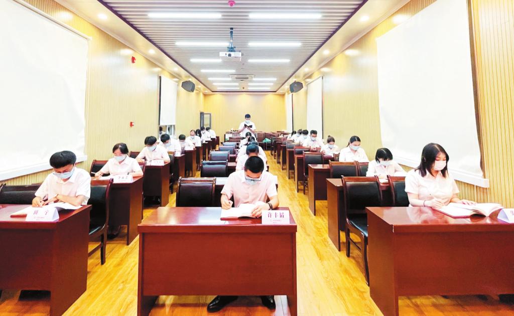 为认真贯彻落实习近平总书记“七一”重要讲话精神,扎实开展党史学习教育,深化广大青年员工对党的光辉历史的了解,彰显爱党爱国、爱行爱岗情怀,激励青年为全行高质量发展贡献青春力量,8月12日,农行忻州分行以赛促学,举行了青年党史知识竞赛。 (乔 敏 摄)