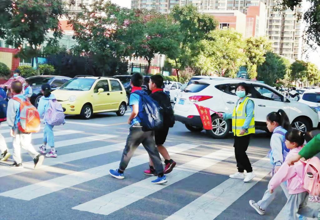 为了保证孩子们上学时,安全有序地通过斑马线进入校园,长征小学六年级的家长组成志愿服务护学团队,在学校附近的马路上迎送学生,受到学生和家长们的点赞。