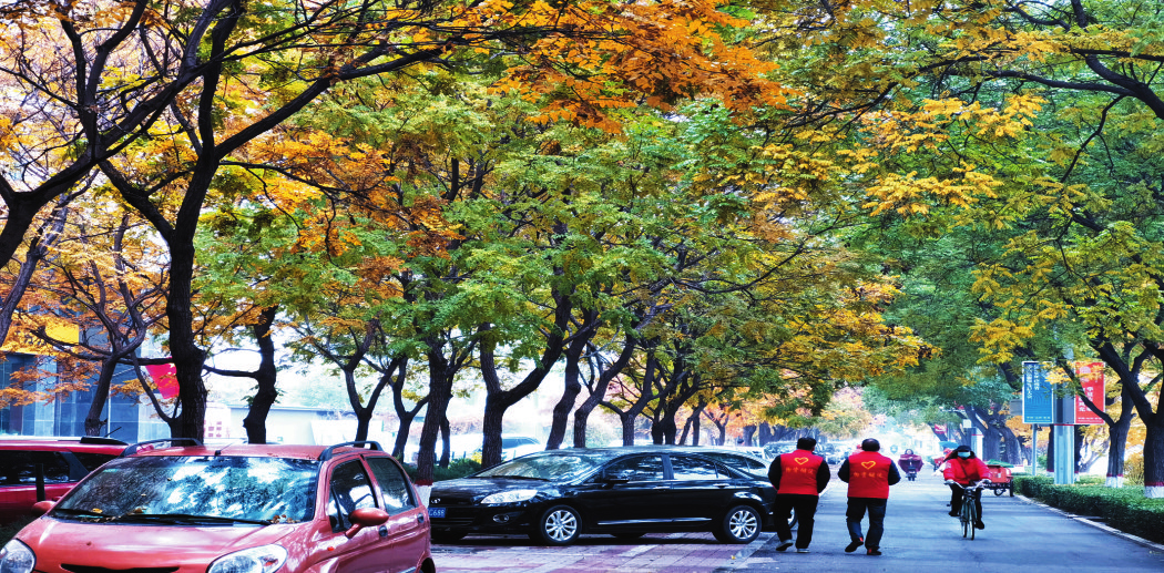 深秋养眼的美景在公园里,也在街角旁。远观,金黄、红色和绿色晕染于一处;近看,草木相映成趣妩媚动人,静谧的美景让人流连忘返。