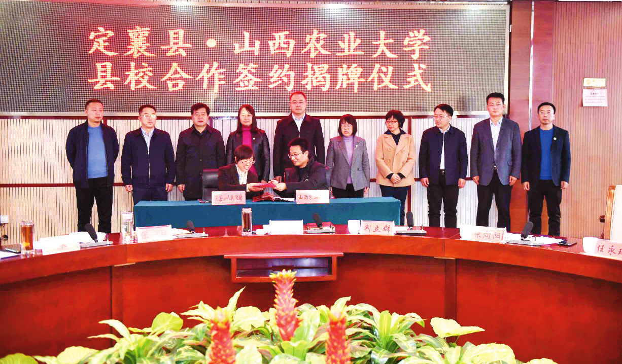 近日,定襄县与山西农业大学举行县校合作签约揭牌仪式,标志着定襄县农业产业发展进入了产、学、研、用协同发展新阶段,必将促进农村人才培养、农民就业创业和农业转型升级,进一步增强产业竞争力和发展后劲,为全县巩固拓展脱贫攻坚成果、接续推进乡村振兴注入强劲动力。(王振江 摄)