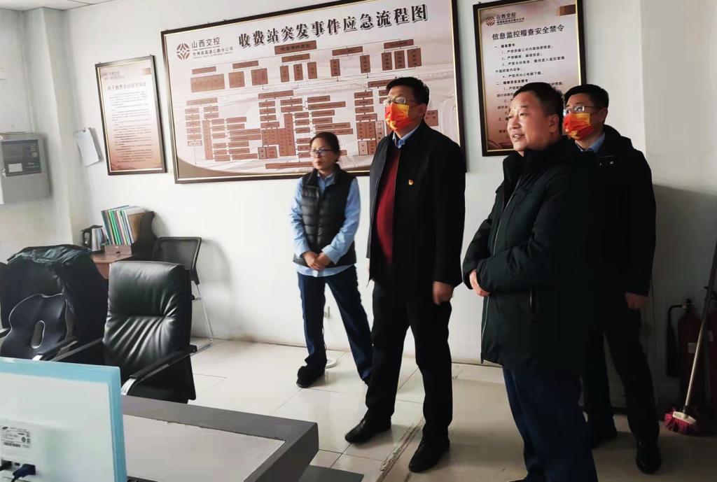 2022年2月6日上午, 山西交控忻州南高速公路管理公司党委书记、董事长潘东一行在站长李瑞军等人的陪同下,对忻州收费站收费、治超、监控、票证等工作人员进行现场慰问,送上公司党委的关心关怀之情,并向所有员工致以新春问候。他强调要切实做好关爱、关心员工工作,疫情防控、勇于担当、主动作为,切实抓好常态化疫情防控及春运安全保畅工作,扎实筑牢安全生产环节管控,确保“两节”、春运、冬奥、冬残奥会等期间站区、人员运营安全稳定于担当。(边杰)