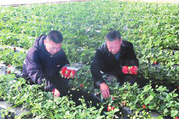 近日,原平市绿康种植专业合作社日光温室大棚内,草莓泛红、香味扑鼻,进入盛果期,迎来春节期间销售旺季。 (