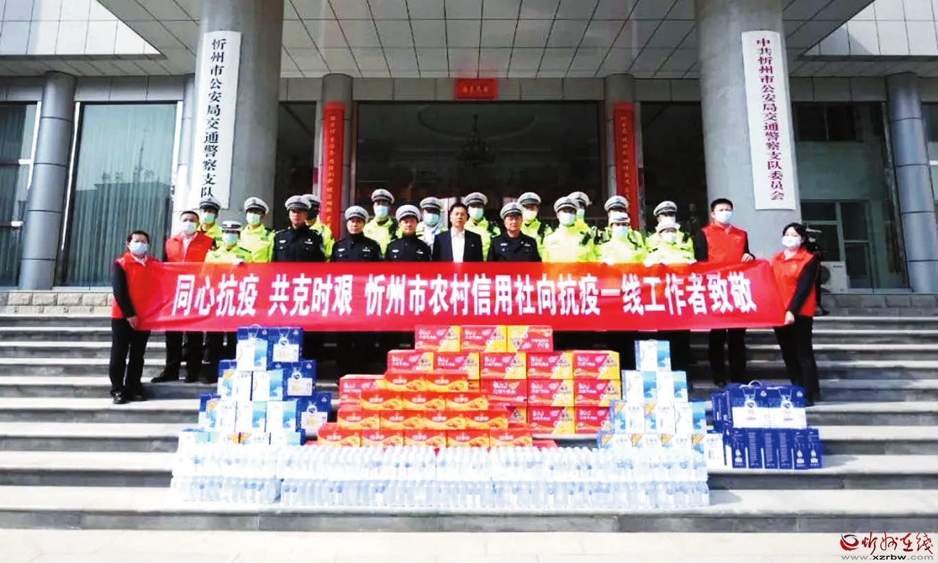 为助力全市疫情防控工作,4月18日,市联社组织干部员工看望慰问市公安局交警支队抗疫一线的工作人员,为他们送上方便面、矿泉水等100余箱慰问品,以实际行动向夜以继日奋战在防控一线的工作人员致以崇高的敬意和衷心的感谢。(杨 煦 摄)