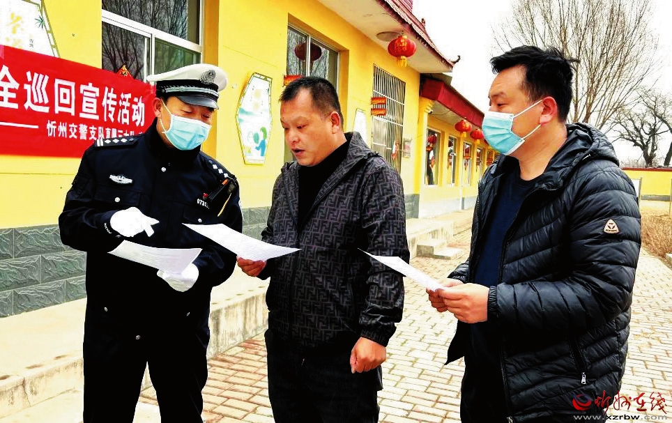 为进一步增强农民群众交通安全意识和文明出行意识,预防和减少道路交通事故的发生,近日,市公安局交警支队直属三大队的民警辅警走进忻府区樊野村、逯家庄、东社村等地,开展“美丽乡村行”交通安全宣传活动。
