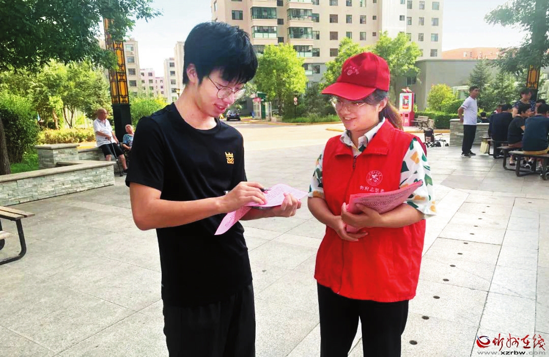 志愿者在小区进行问卷调查。刘慧 摄