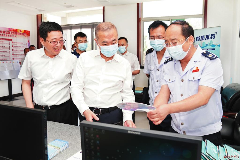 近日,国家税务总局山西省税务局党委书记、局长齐志宏一行深入我市税务部门和部分重点企业,聚焦全方位推动山西税务高质量发展,就加强基层党建工作、落实新的组合式税费支持政策、落实《关于进一步深化税收征管改革的意见》、优化税收营商环境、提升纳税人满意度等重点工作进行调研,对忻州税务提出了强党建、创品牌上再加力,抓提升、促发展上再加力,带队伍、激活力上再加力和防风险、保稳定上再加力要求。 (龙红星 摄)