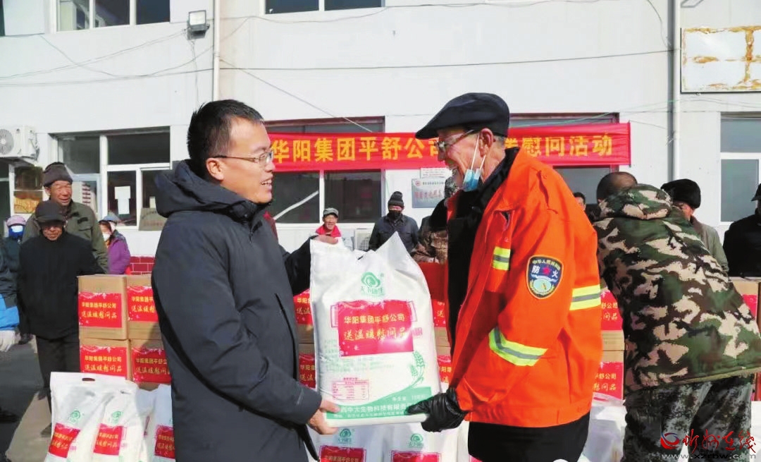 走访中,该公司领导分别与段家村、苍峪沟村驻村工作队员和村干部进行了座谈,详细了解了两个村的基本情况,实地查看了乡村振兴工作取得的成效。苏新彦对驻村工作队的辛勤付出和工作成绩给予肯定和感谢。希望驻村工作队员扛牢政治责任,始终坚持扶贫、扶志、扶智相结合,积极开展亮点特色工作,不断增强全面推进乡村振兴的内生动力。同时,要加强与村干部的协同配合,加强工作的有效衔接,坚决贯彻落实好上级关于乡村振兴工作的要求,努力推动两个村的乡村振兴工作取得新进展,在共同富裕路上迈出新步伐。图为华阳集团平舒煤业公司党委书记苏新彦(左)为特困户送上慰问品。(记者王国栋)