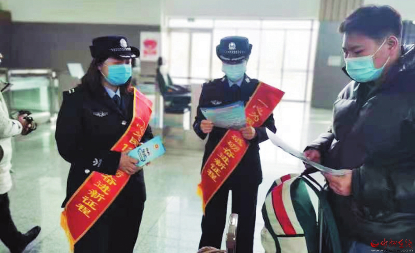 为增强广大旅客出行安全意识,忻州西车站派出所在春运期间,严格勤务落实,强化阵地管控,全力保障旅客安全出行。图为民警走进候车室广泛宣传防电信诈骗知识,以预防和减少各类网络电信诈骗案件的发生。(王林丽 摄)