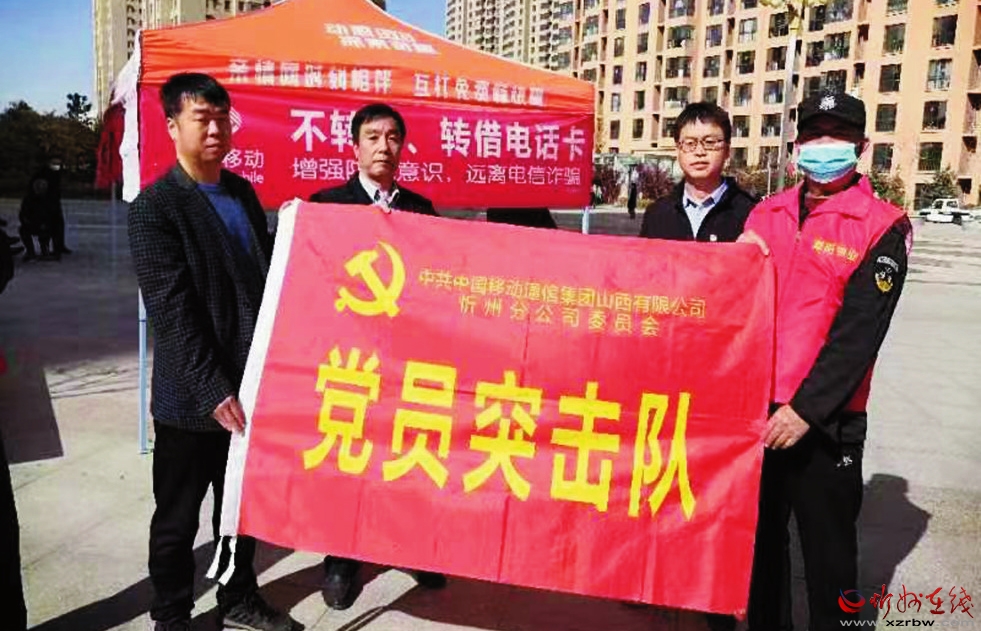 为普及防范电信网络新型违法犯罪知识,最大限度地减少电信网络诈骗案件发生,切实做好人民群众的安全防范教育,10月14日,忻州移动公司党员突击队带领员工深入雁门小区开展防电信诈骗宣传活动。