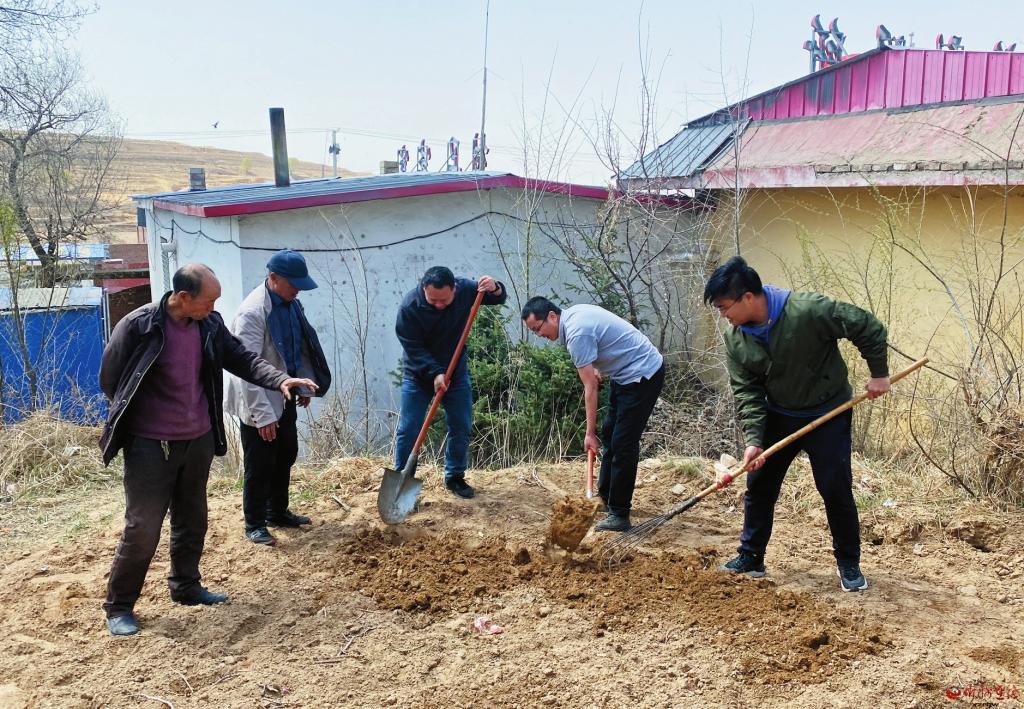 近几年,驻村工作队员们为此想了很多点子。今年春季,他们带领村民开辟了“三道垄”。第一道垄在村委会屋后种蔬菜,由他们带头,在村内先行打造庭院经济示范地。第二道垄在村内荒坡上的大棚里,准备种绿皮无籽大西瓜,推广旱地西瓜种植。第三道垄在村东头的山坡上,计划种植杏树林,待天气转暖后再种植一些适合林下生长的芍药、玫瑰、月季等,发展观赏经济。