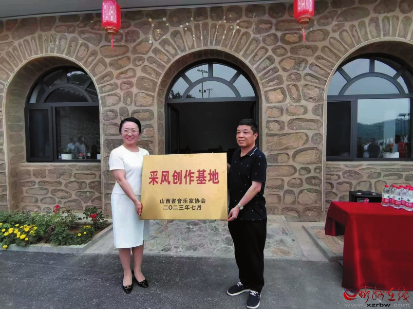 省音协常务副主席白云,原平市委常委、宣传部部长张志男为采风创作基地爱木图景区授牌。