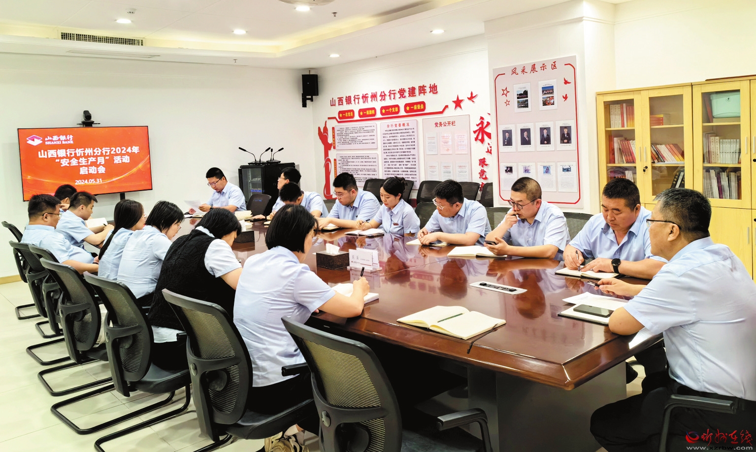 今年6月是第23个全国“安全生产月”,主题是“人人讲安全、个个会应急——畅通生命通道”。为认真贯彻落实上级部门安全生产工作部署要求,5月31日,山西银行忻州分行召开“安全生产月”活动启动会,要求各责任主体全面压实安全责任,深入开展安全宣传,坚决守牢安全生产底线。启动会后,全体参会人员集中观看了《安全生产 责任在肩》警示教育片。(秦浩东摄)