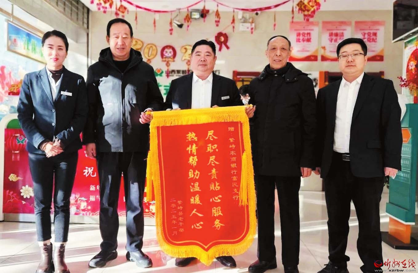 “咱农商银行的服务真是太好了!”近日,一位老干部将一面写有“尽职尽责贴心服务 热情帮助温暖人心”的锦旗,送到了繁峙农商银行富民支行。在首季“开门红”期间,该行工作人员以专业的素养和热情的态度,为客户提供了暖心服务,赢得了客户的好评,树立了农商行的良好社会形象。(郭凯文摄)