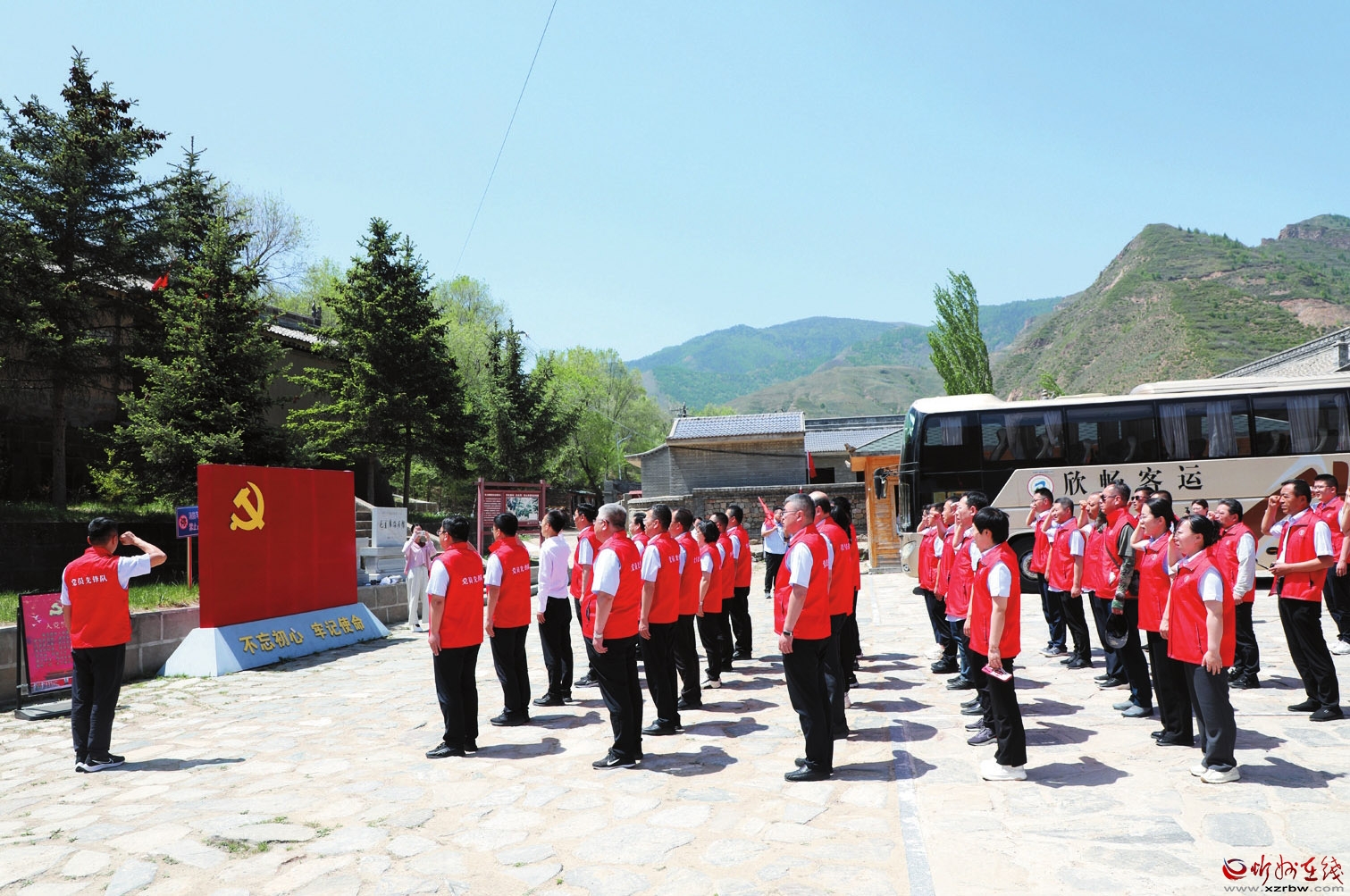 近日,农行忻州分行机关组织全体党员前往繁峙县伯强村毛主席路居纪念馆开展主题党日活动。在纪念馆前,全体党员面对党旗庄严宣誓,重温入党誓词,接受了一次深刻的红色教育洗礼。(王灿 摄)