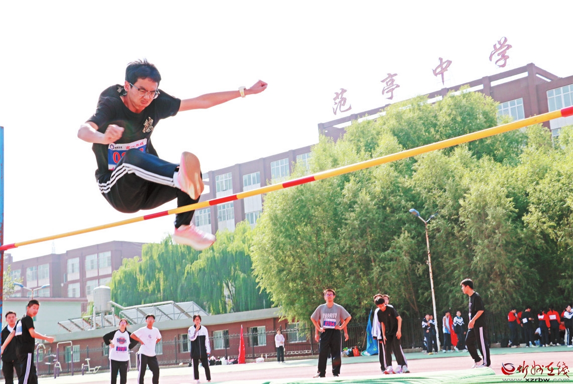 近日,2025年原平市中小学秋季田径运动会在原平市范亭中学体育场举行。图为参赛选手在跳高比赛中大显身手。 (