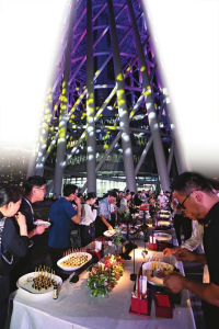 在“山西之夜”,嘉宾们有无数种打开山西的方式,美食无疑是最直接的一种。广州塔二层的室外场地上,冷餐会重点围绕我省11市特色美食,推出16道菜品、5种小吃、26种饮品、7种干果和4种水果。