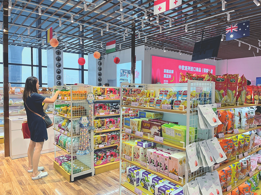 消费者在我省中欧班列进口商品(保税)店选购商品。本报记者李若男摄