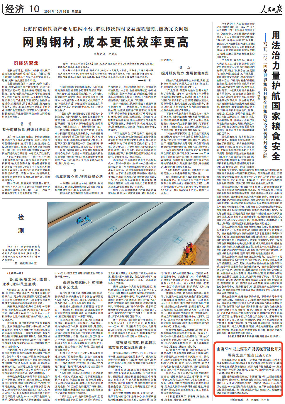 本报太原10月15日电 (记者郑洋洋)记者从山西省发展改革委获悉:山西50%以上煤炭产能实现智能化开采,建成30个绿色开采试点示范煤矿,煤炭先进产能占比近82%,煤炭产量连续4年位居全国前列。2023年,山西外送电量1576亿千瓦时、覆盖23个省份。